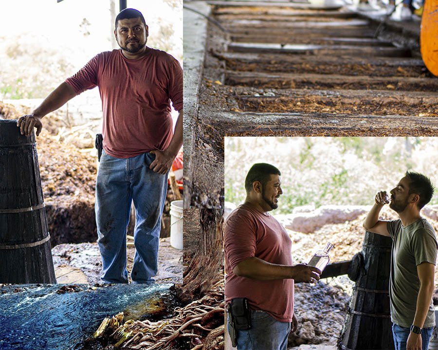 Detrás de cada etapa del proceso hay trabajo duro, sigue el traslado del agave y la molienda, para después dar paso a que las barricas de roble y el transcurso de 2 días se encarguen de la fermentación.